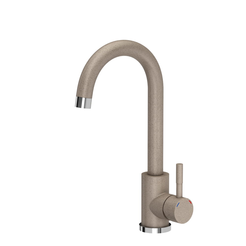 Zestaw granitowy beżowy - bateria kuchenna - kran - syfon - Teor