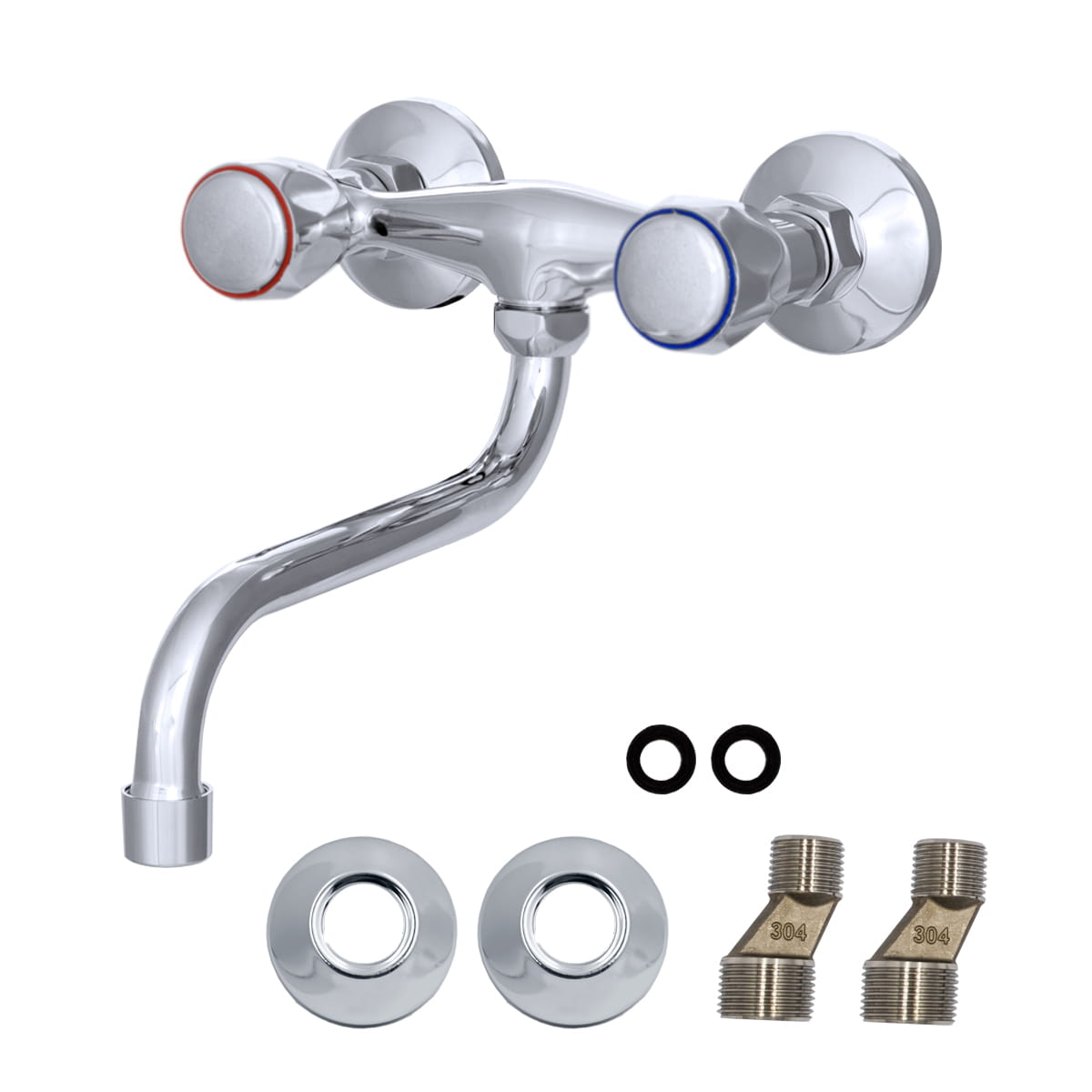 Klasyczna S bateria kuchenna ścienna o wysokiej jakości, wykonana z mosiądzu, w kolorze chrom. Głowice ceramiczne 1/4 obrotu. Powłoka baterii odporna na przebarwienia i wysoką temperaturę. Perlator wymienny, napowietrzający m22.
