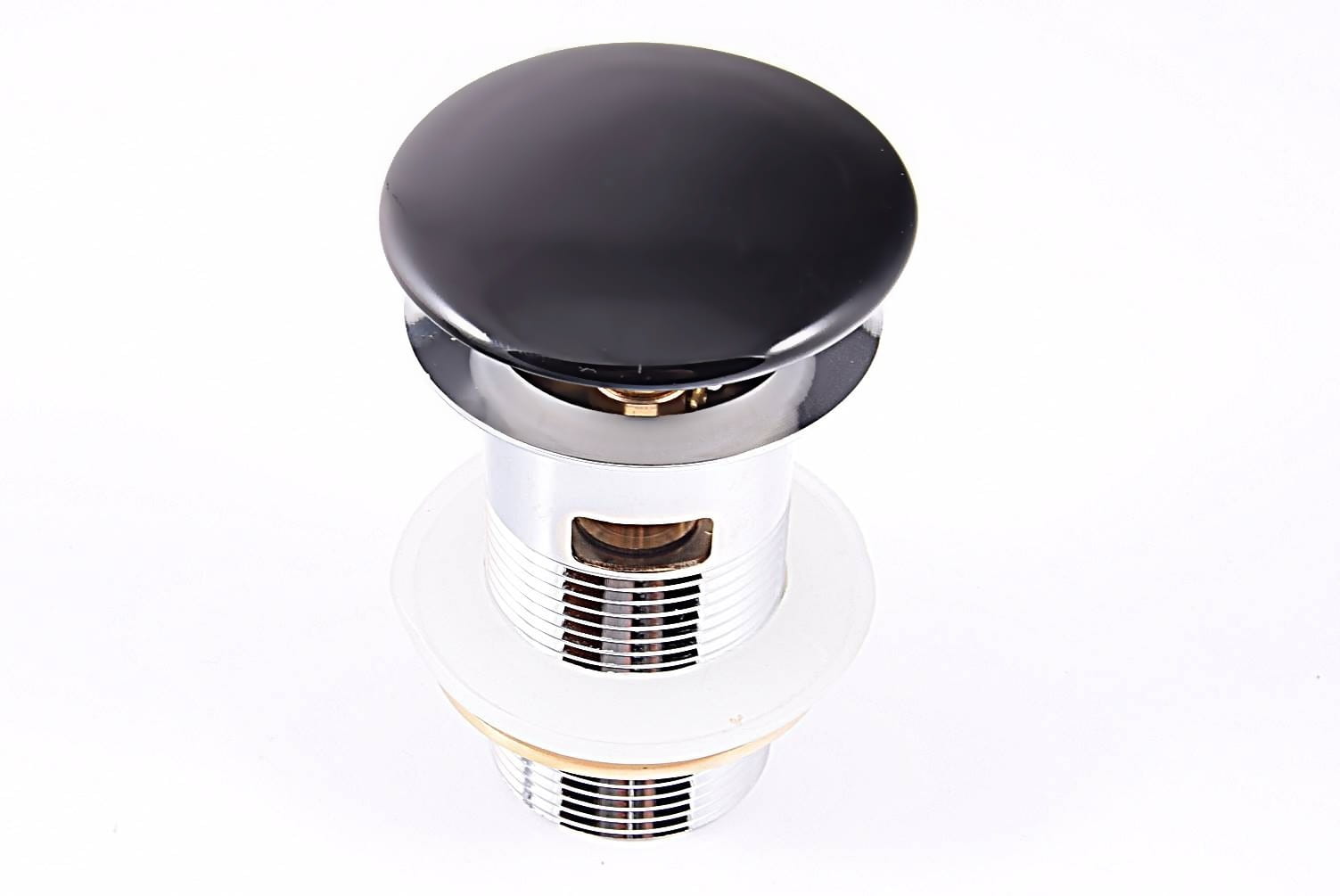 Korek klik klak do umywalki z przelewem wykonany z mosiądzu i ceramiki, wysoka jakość, w kolorze czarny. Pasuje do 99,9% umywalek. Gwint 1 1/4". Rozmiary standardowe. Odporny na detergenty, zarysowania i wysoką temperaturę.