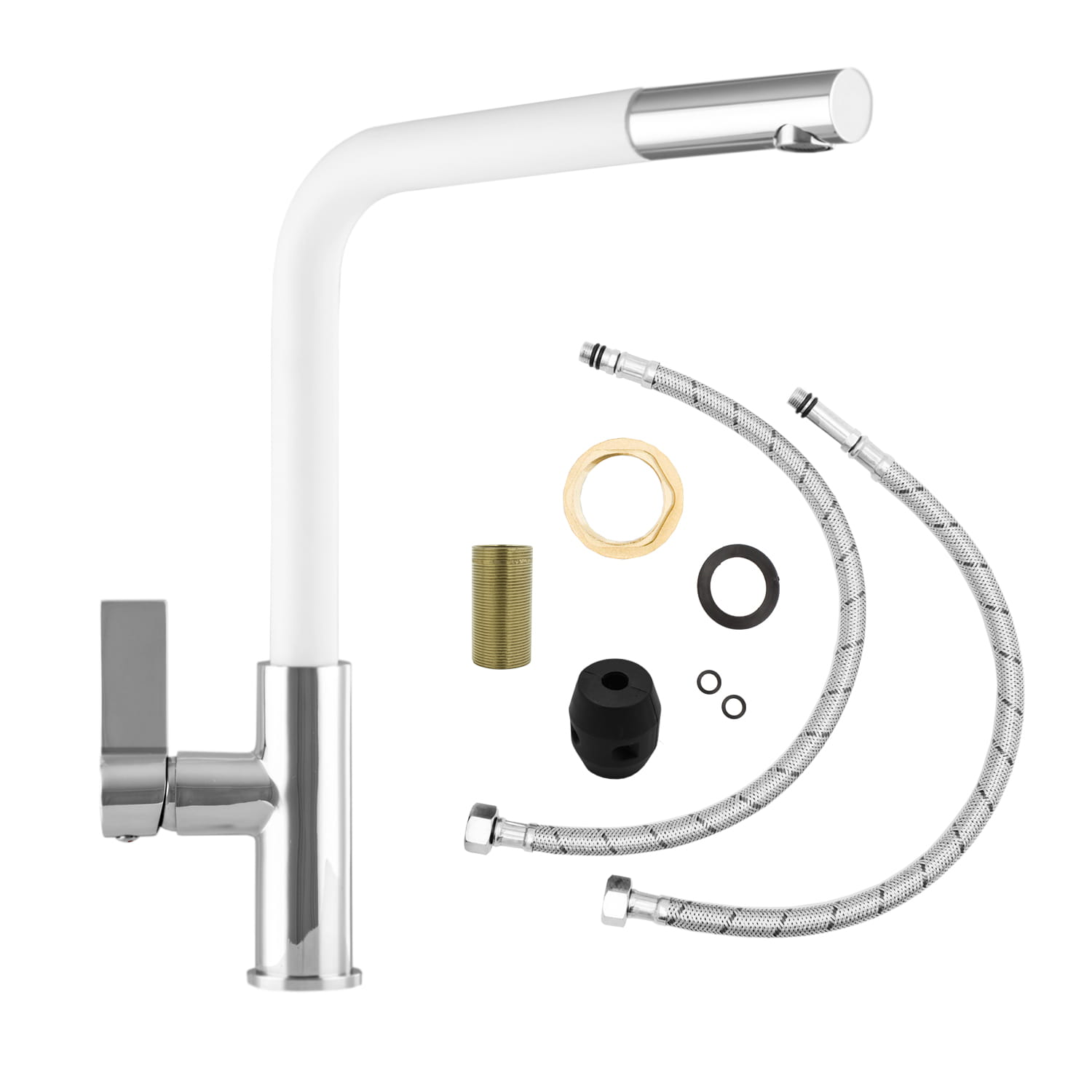 Bateria kuchenna biała chrom elastyczna zlew F3000