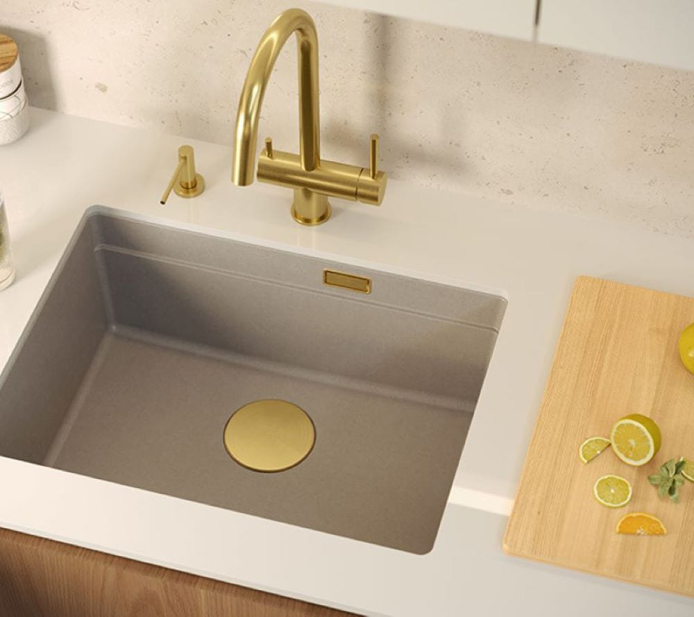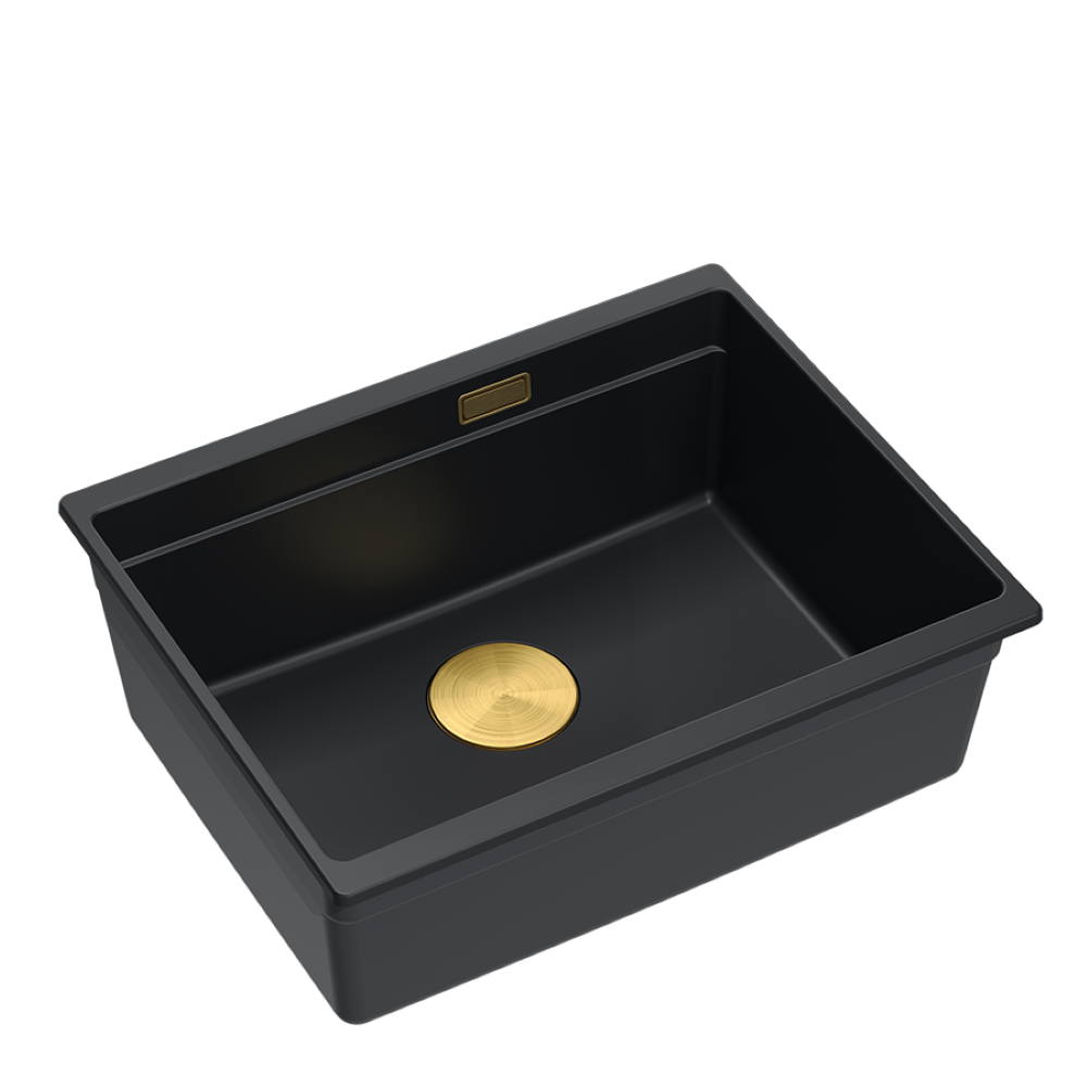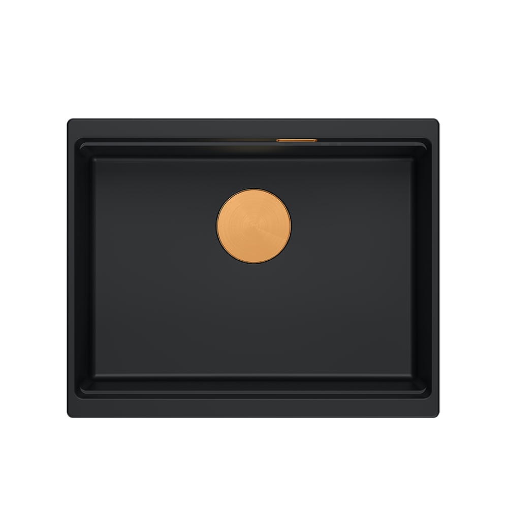 Logan 100 GraniteQ zlewozmywak pure carbon 1-komorowy podwieszany z syfonem manualnym miedziany/pure cerbon/złoty