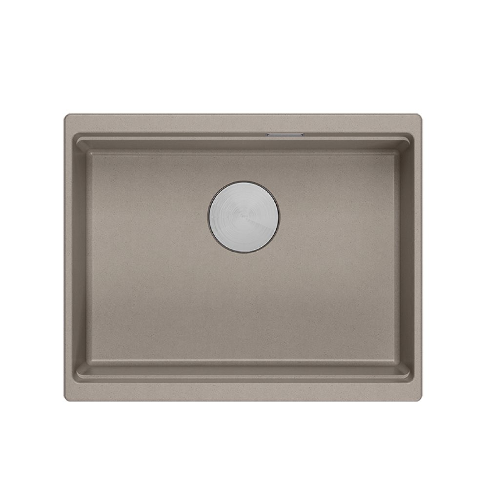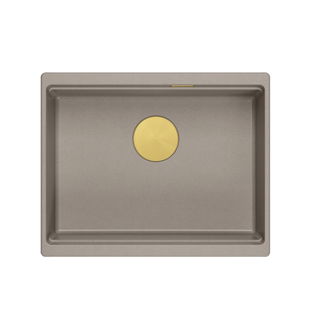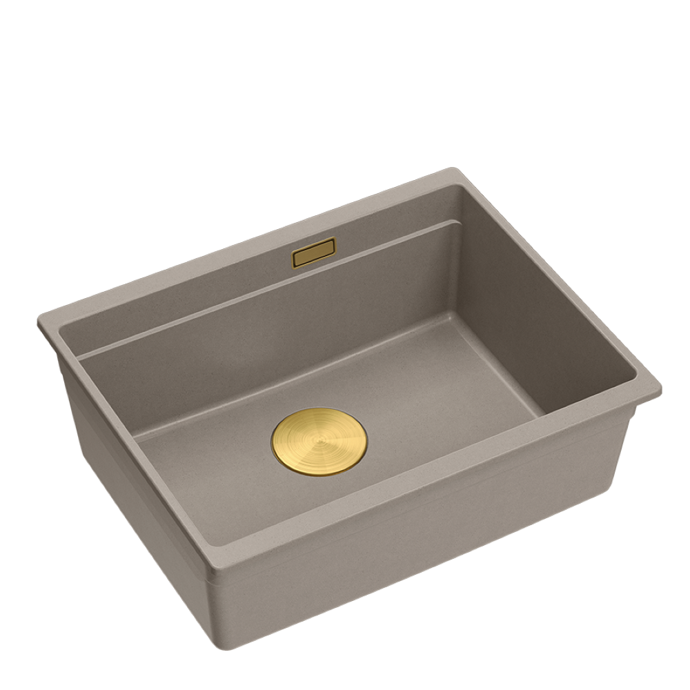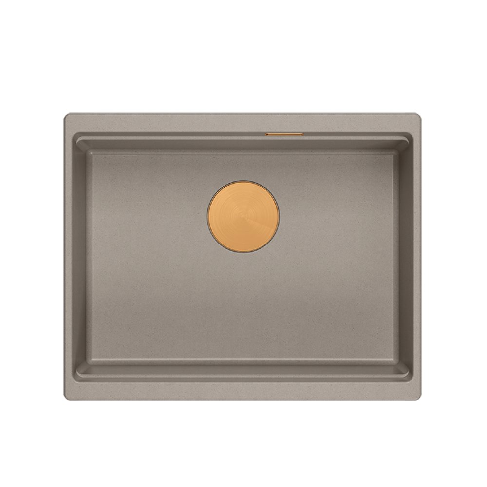 Logan 100 GraniteQ zlewozmywak soft taupe 1-komorowy podwieszany z syfonem manualnym miedziany/stal szlachetna/złoty