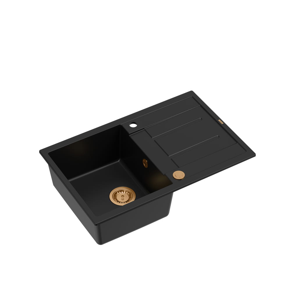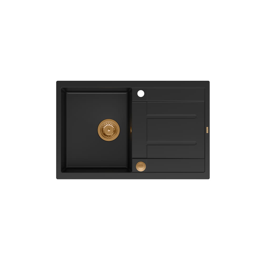 Morgan 111 GraniteQ zlewozmywak pure carbon z syfonem Push To Open 1-komorowy z/o/ elementy miedziane/stal szlachetna/złoto