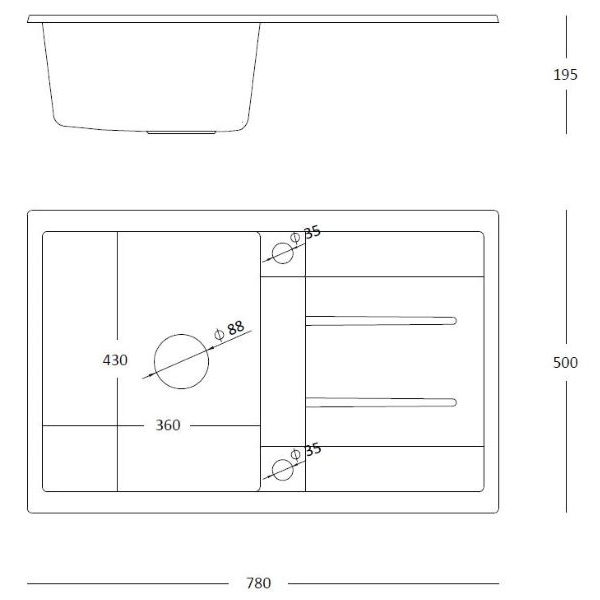 Długość x szerokość zlewozmywaka  780 mm x 500 mm