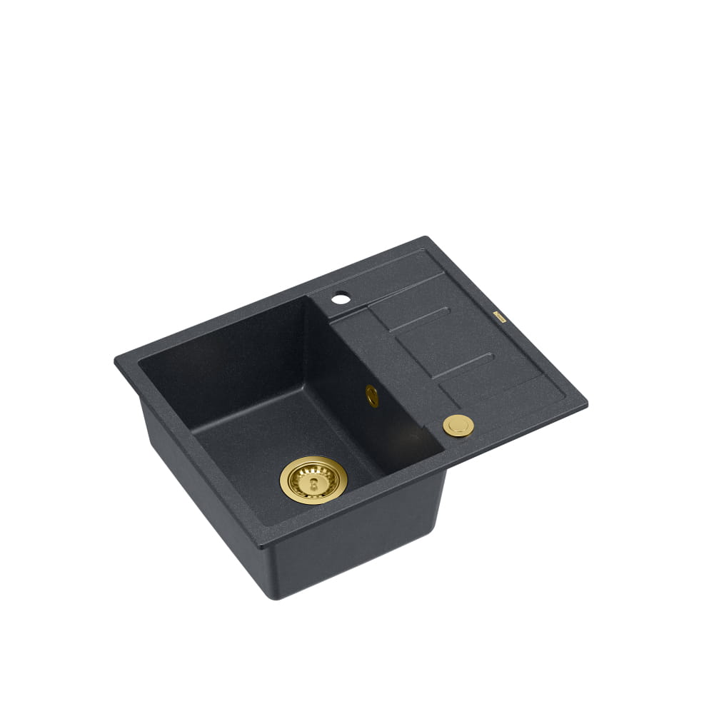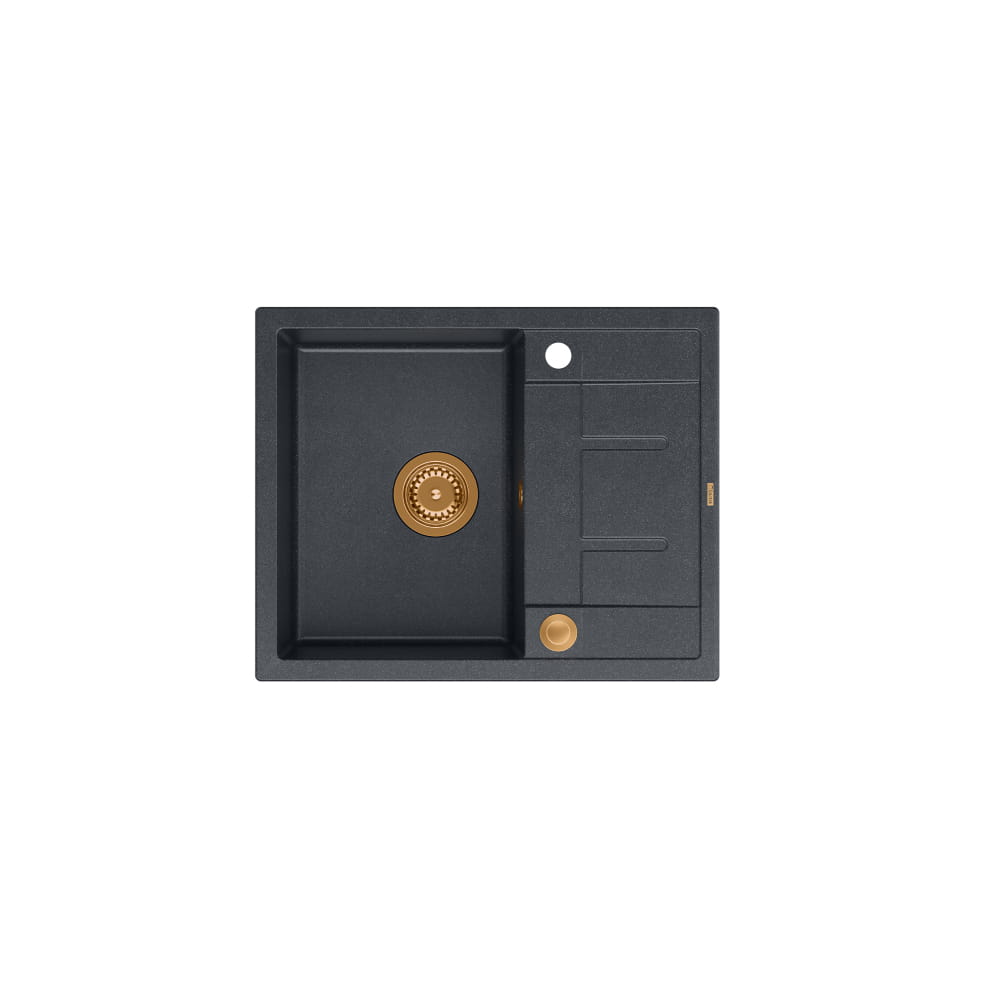 Morgan 116 GraniteQ zlewozmywak black diamond z syfonem Push To Open kol. miedziany/złoty/stal szlachetna 1-komorowy z/o + zaczepy 4 szt