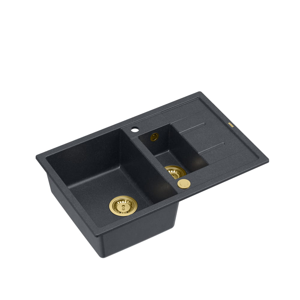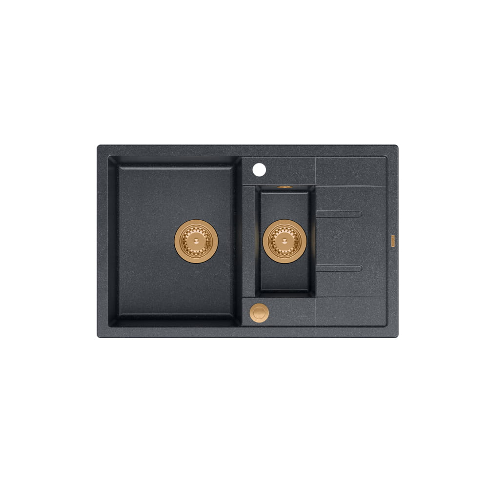 Morgan 156 GraniteQ zlewozmywak black diamond z syfonem Push To Open okrągły 1,5-komorowy z/o/ elementy miedziane/złote/stal szlachetna