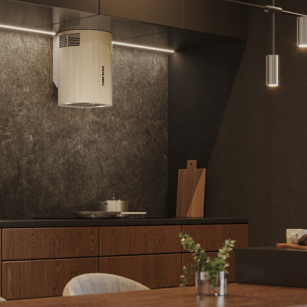 Idealne rozwiązanie do kuchni, w której nie ma możliwości podłączenia okapu do systemu wentylacyjnego. Urządzenie pracuje w obiegu zamkniętym. Opary powstające podczas gotowania są oczyszczane z zapachów i tłuszczów, a następnie zwracane do pomieszczenia.