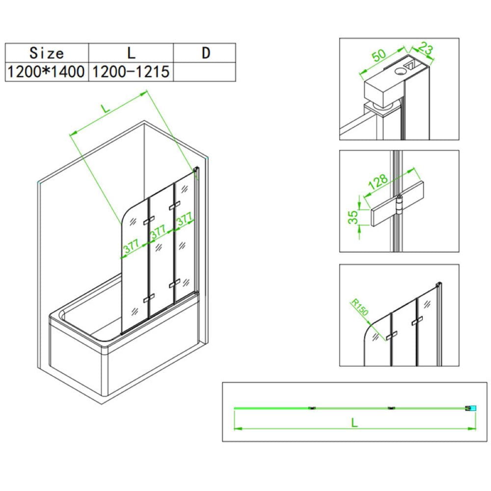Zestaw zawiera: szybę z technologią NANO GLASS o grubości 6 mm, aluminiowy profil z regulacją 15 mm (możliwość niwelacji krzywizny ścian), komplet śrub montażowych, stalowe zawiasy oraz uszczelkę nawannową.