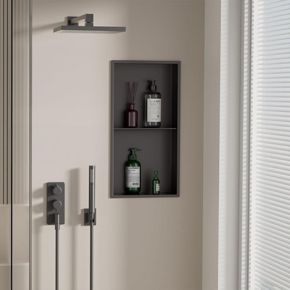Półka łazienkowa wnękowa Duo z kołnierzem czarna 60 x 30 x 10 cm