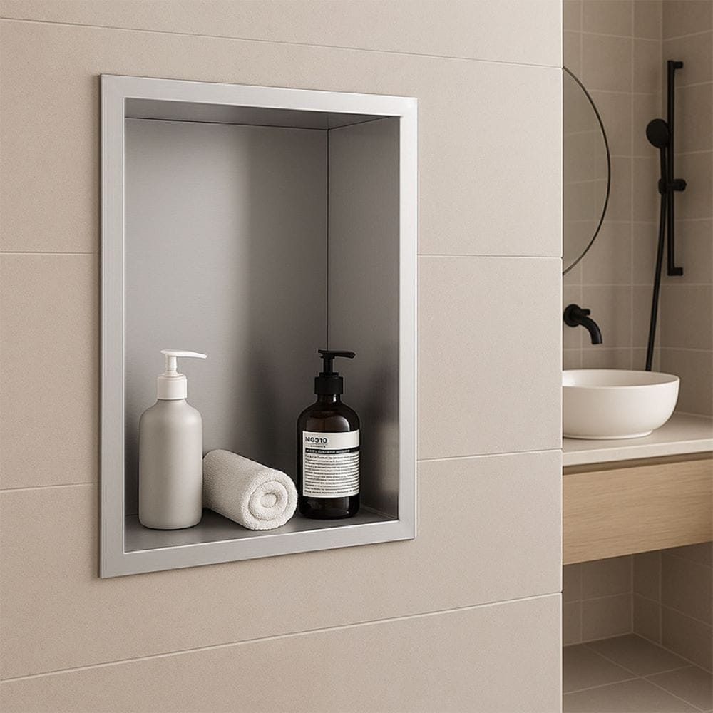 Półka wnękowa Hydrosan to nowoczesne i funkcjonalne rozwiązanie, które doskonale sprawdzi się w każdej łazience, zwłaszcza tam, gdzie liczy się estetyka i maksymalne wykorzystanie przestrzeni. Dzięki montażowi podtynkowemu półka wtapia się w powierzchnię ściany, tworząc z nią spójną całość i zapewniając elegancki, minimalistyczny efekt. Produkt został wykonany z wysokiej jakości stali nierdzewnej, co gwarantuje jego trwałość i odporność na wilgoć, matowienie oraz korozję. Gładka powierzchnia nie tylko nadaje półce estetyczny wygląd, ale również ułatwia czyszczenie – wystarczy przetarcie wilgotną ściereczką, bez konieczności stosowania agresywnych środków czyszczących. Dodatkowym atutem jest kołnierz maskujący, który zapewnia estetyczne wykończenie krawędzi i idealne dopasowanie do powierzchni ściany. Półka została zaprojektowana z myślą o wygodnym przechowywaniu niezbędnych akcesoriów – idealnie sprawdzi się na kosmetyki, środki higieniczne czy drobne przedmioty codziennego użytku.