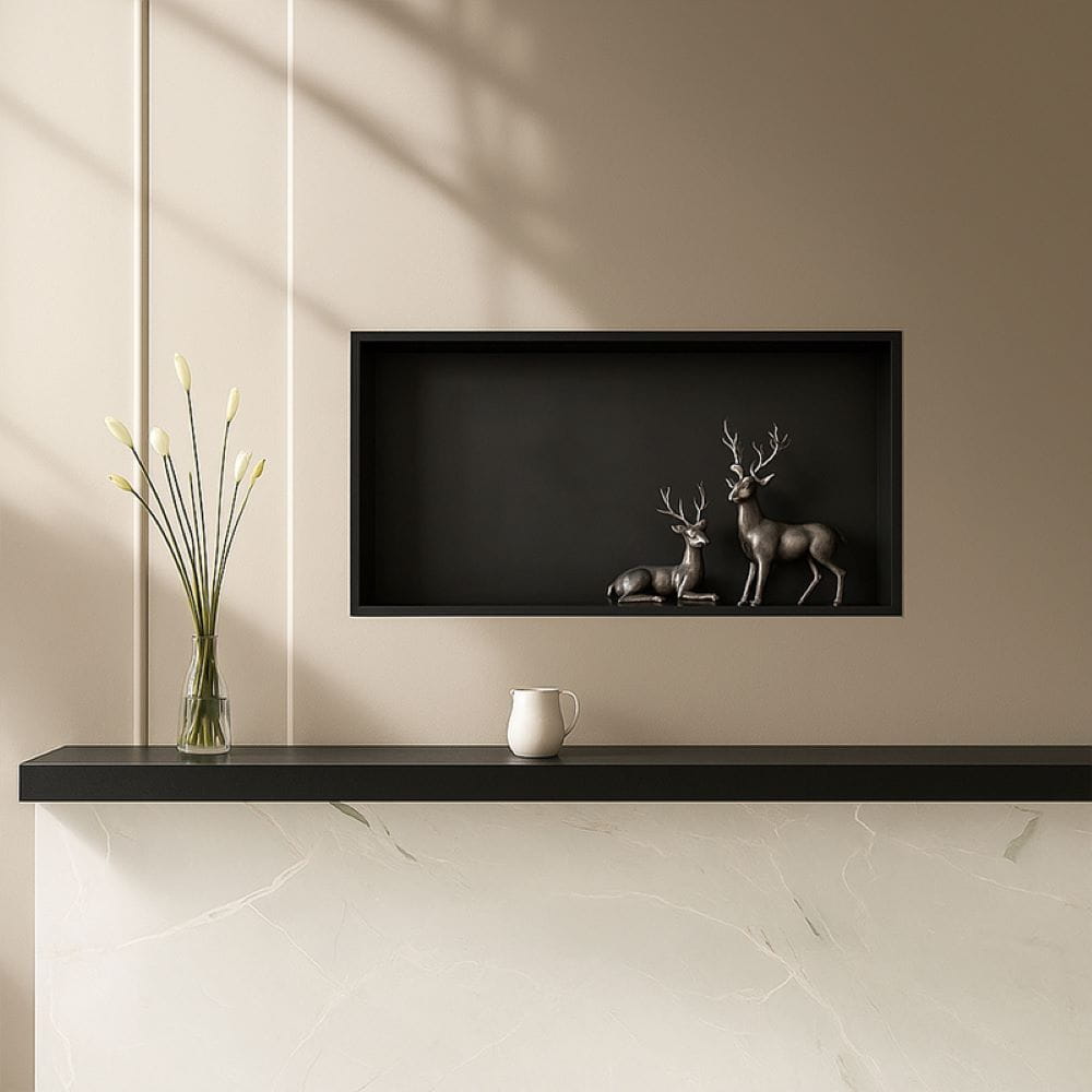 Półka łazienkowa wnękowa Iga z kołnierzem czarna 60 x 30 x 7 cm