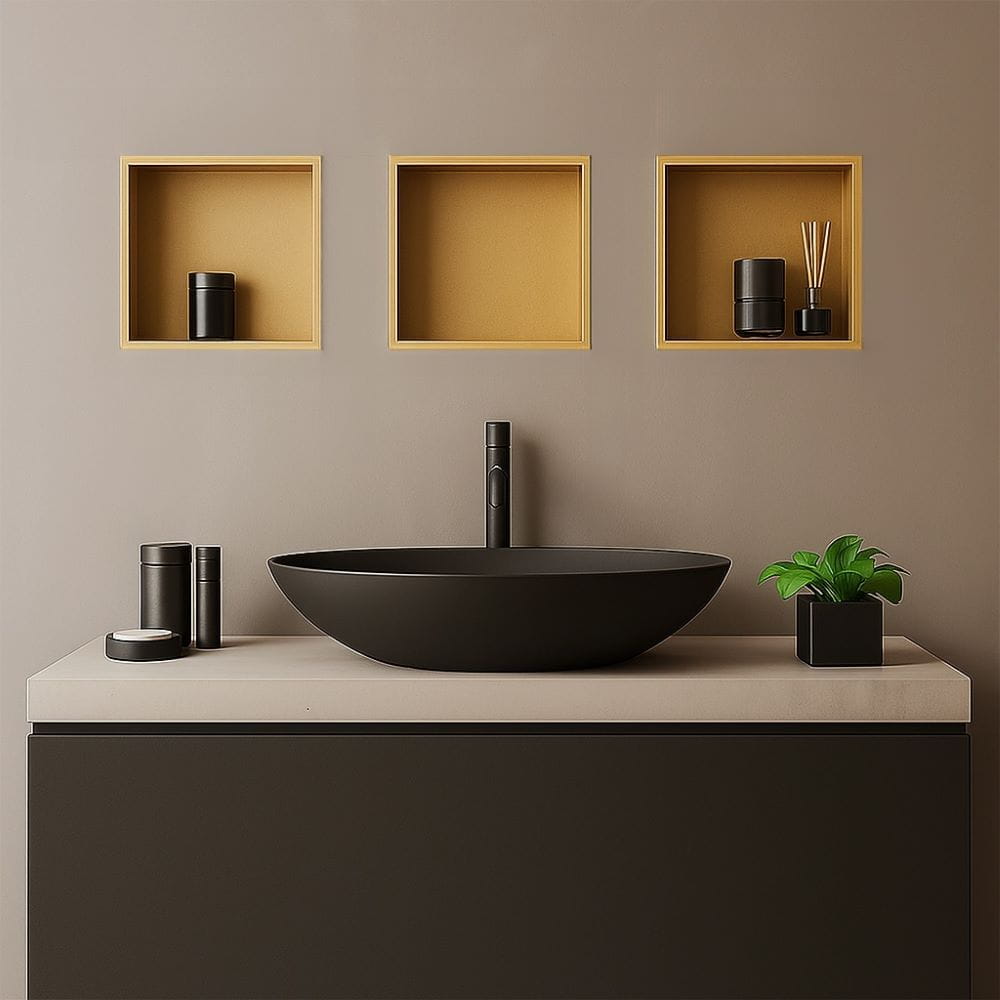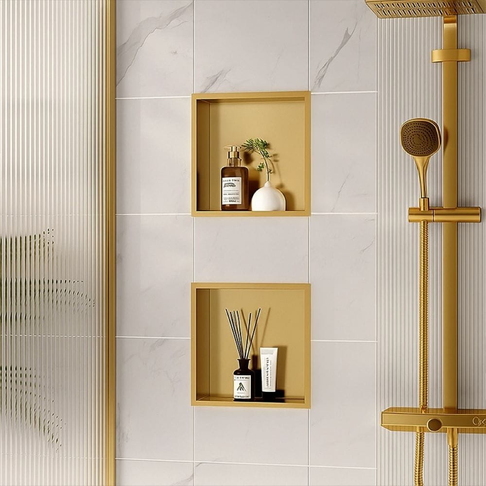 Półka łazienkowa wnękowa Iga z kołnierzem złota 30 x 30 x 10 cm