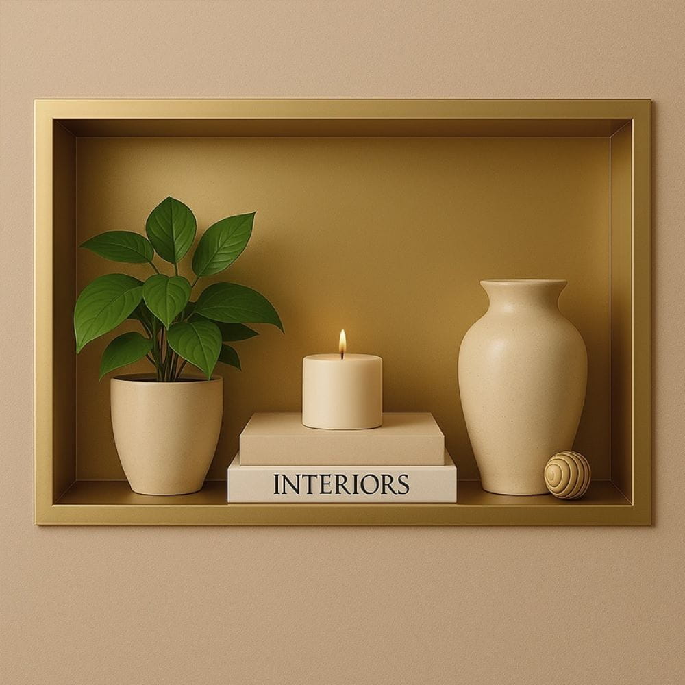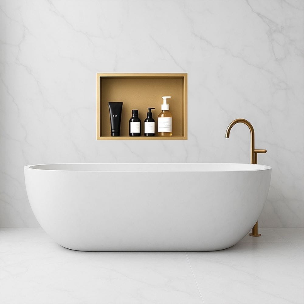 Półka łazienkowa wnękowa Iga z kołnierzem złota 45 x 30 x 7 cm
