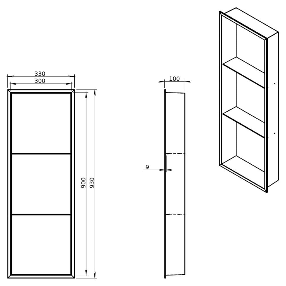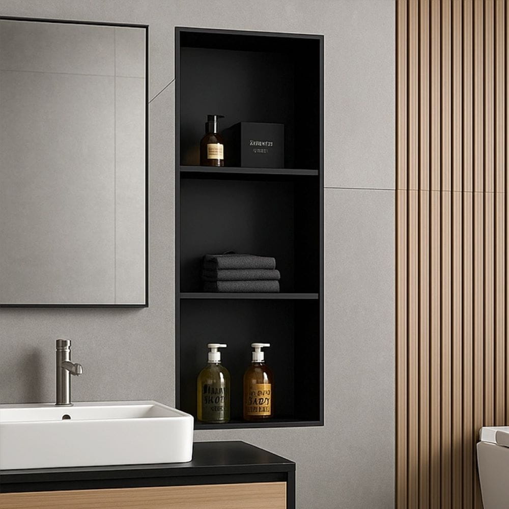 Półka łazienkowa wnękowa Tres z kołnierzem czarna 90 x 30 x 10 cm