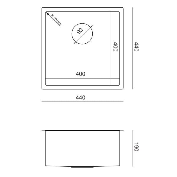 | Długość x szerokość zlewozmywaka | 440 mm x 440 mm |