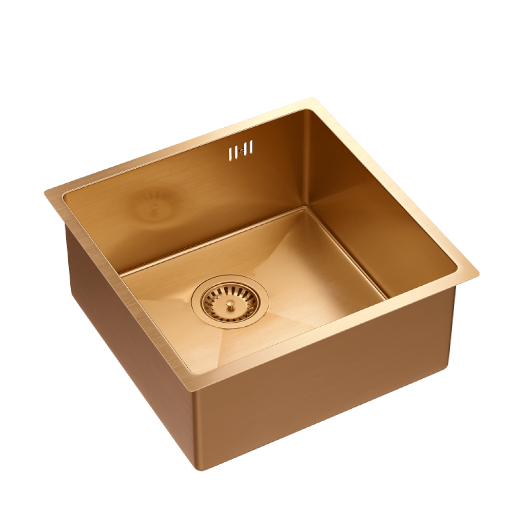 Zlew dostępny jest w czterech odsłonach kolorystycznych: miedź PVD, stal szczotkowana oraz złoto PVD.