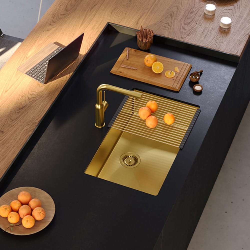 Zlew dostępny jest w czterech odsłonach kolorystycznych: graphite metal PVD, miedź PVD, stal szczotkowana oraz złoto PVD.