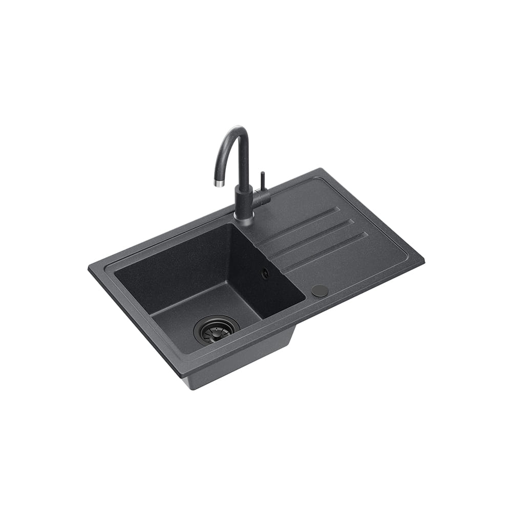 Quadron Ben 111 zlewozmywak granitowy czarny + bateria czarna + syfon czarny + zaślepka czarna
