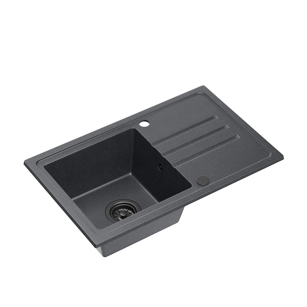 ● Produkt jest idealny do kuchni, gdzie przestrzeń musi być zaplanowana i doskonale zorganizowana dla komfortu pracy. Na całym obwodzie zlewozmywaka zastosowane zostało obniżenie, dzięki czemu woda nie wydostaje się na zewnątrz, a dodatkowo stworzona została możliwość położenia na powierzchni dodatkowych akcesoriów, ułatwiających pracę w kuchni. Ociekacz wyposażony jest w żłobienia, odprowadzające płyn bezpośrednio do komory, dzięki czemu na jego powierzchni nie tworzą się nieestetyczne plamy czy zabrudzenia. Zastosowany materiał gwarantuje łatwość czyszczenia i pielęgnacji, a co za tym idzie, zapobiega osadzaniu się kamienia i przebarwień, oraz sprawia, że produkt wygląda nienagannie przez bardzo długi czas. Zlewozmywak charakteryzuje się także dużą odpornością na uderzenia, zarysowania oraz wahania temperatur. Zlewozmywak w komplecie posiada syfon typu save space, który dzięki układowi rurek odprowadzających wodę, pozawala zaoszczędzić miejsce w szafce. Może ono zostać wykorzystane do przechowywania opakowań z detergentami lub pojemników na odpadki. To bardzo praktyczne rozwiązanie. Istnieje także możliwość podłączenia pralki lub zmywarki.