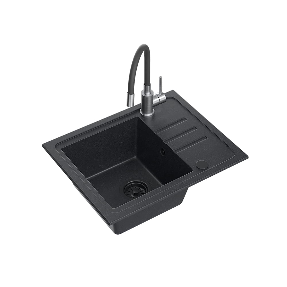 Quadron Ben 116 zlewozmywak granitowy czarny + bateria elastyczną wylewką czarna + syfon czarny + zaślepka czarna