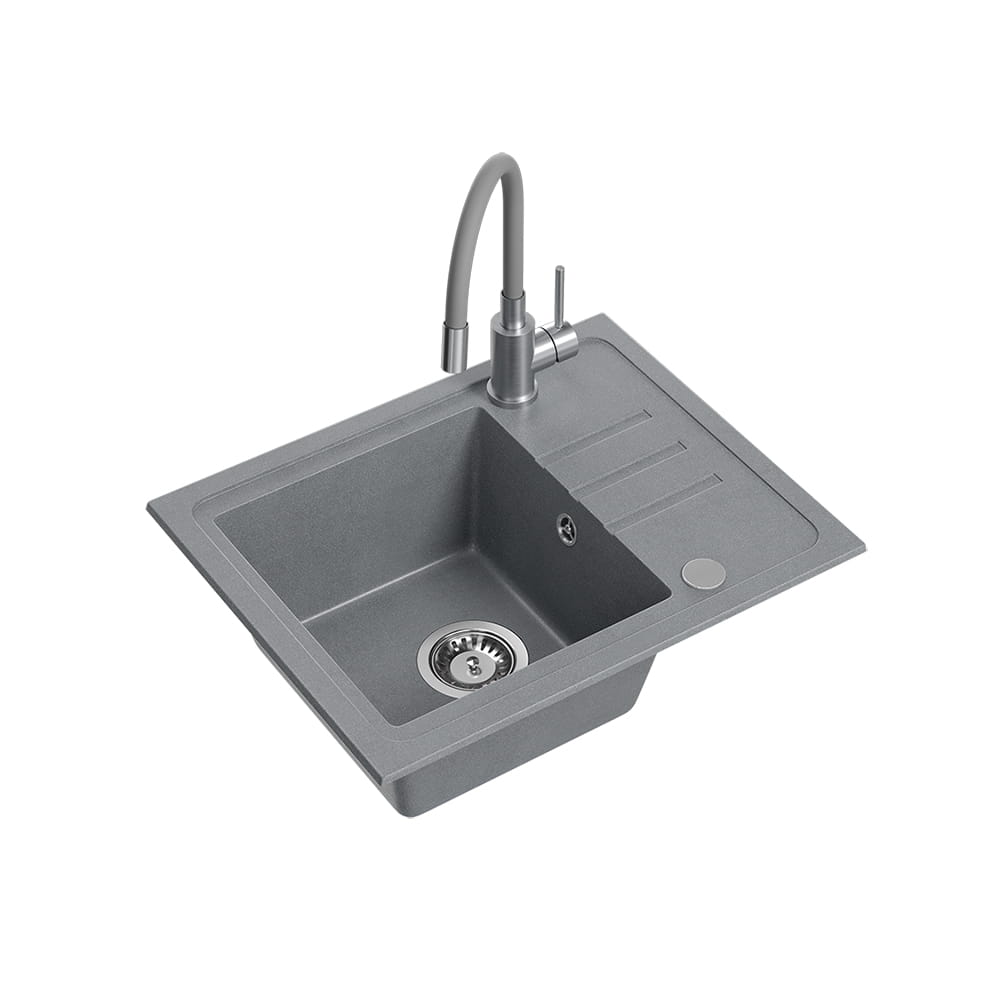 Quadron Ben 116 zlewozmywak granitowy szary + bateria z elastyczną wylewką szara + syfon + zaślepka