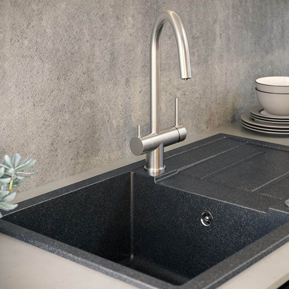 Zestaw granitowy czarny bateria kuchenna zaślepka nowoczesny zestaw rendo