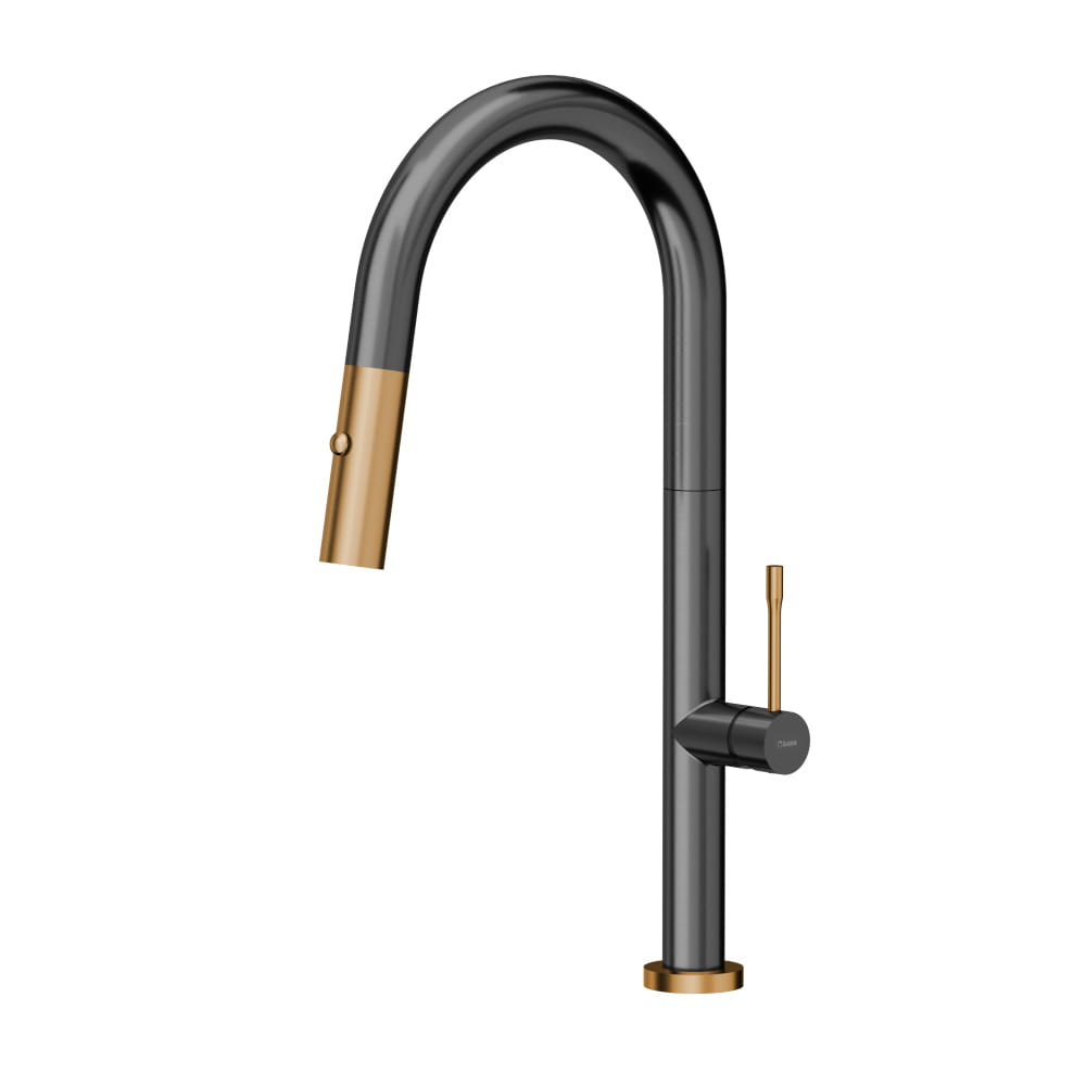 Quadron Felicity T Line SteelQ bateria kuchennaz wyciąganą wylewką graphite metal / Nano PVD miedź