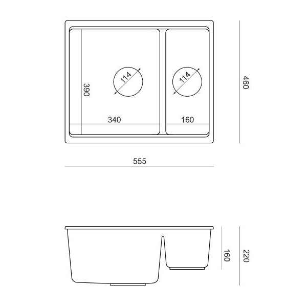 | Długość x szerokość zlewozmywaka | 555 mm x 460 mm |