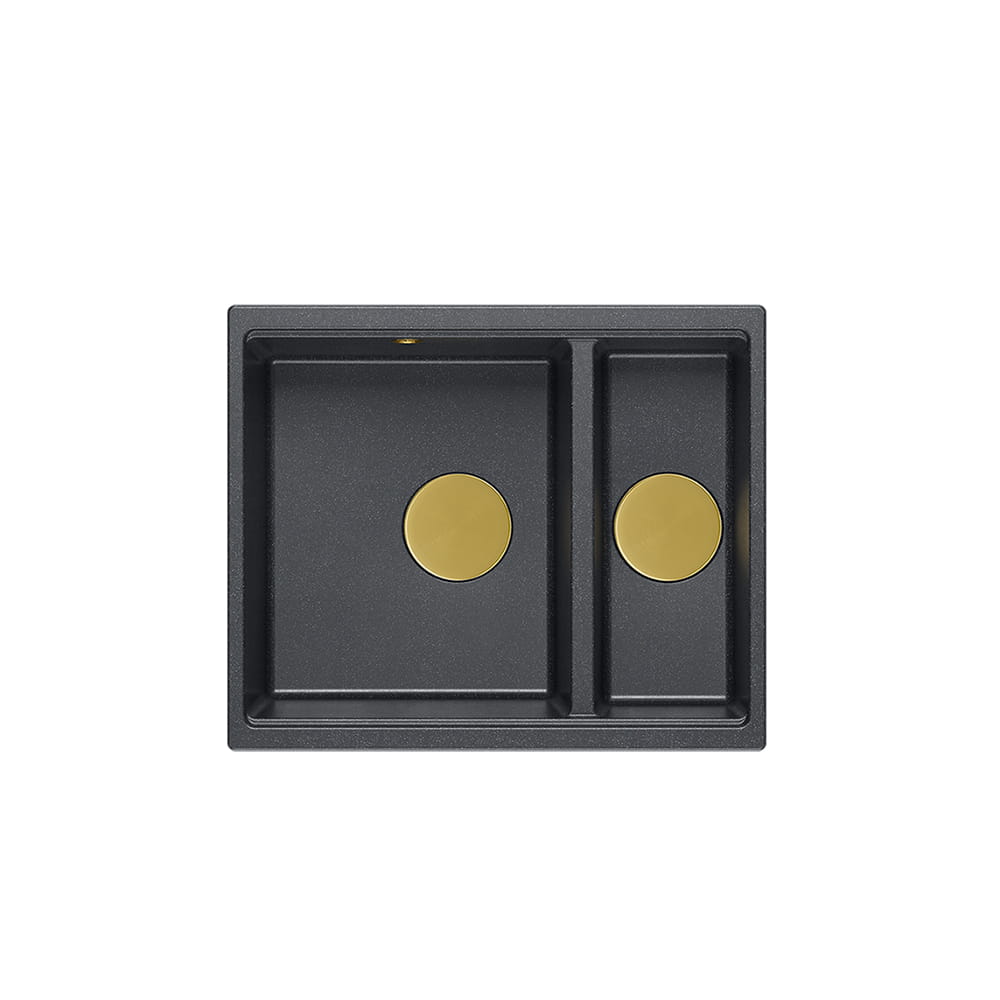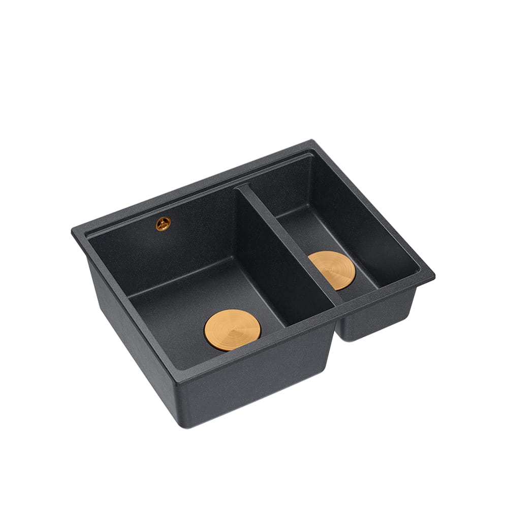 Quadron Logan 150 granitowy zlewozmywak kuchenny czarny + miedź PVD/stal/złoto PVD 1,5-komorowy podwieszany/wpuszczany