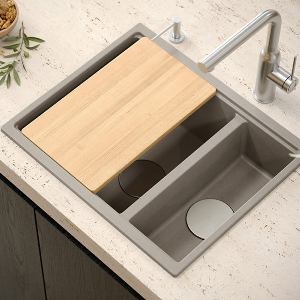 Zlewozmywak LOGAN dostosowany jest do montażu na dwa sposoby: klasycznego - wpuszczanego, oraz wymagającego profesjonalnej usługi obsadzania – podwieszanego. Sposób drugi, to rozwiązanie niezwykle eleganckie, a jednocześnie bardzo praktyczne, gdyż pozwala uzyskać płynne przejście z części roboczej do strefy mokrej. Dzięki likwidacji wystających ponad blat rantów, unikamy nieestetycznego i niehigienicznego zatrzymywania się na nich resztek jedzenia lub brudu. Jednym ruchem można zgarnąć okruszki, lub inne pozostałości po wykonywanej pracy do komory zlewu, dzięki czemu utrzymanie porządku stanie się zdecydowanie łatwiejsze.
