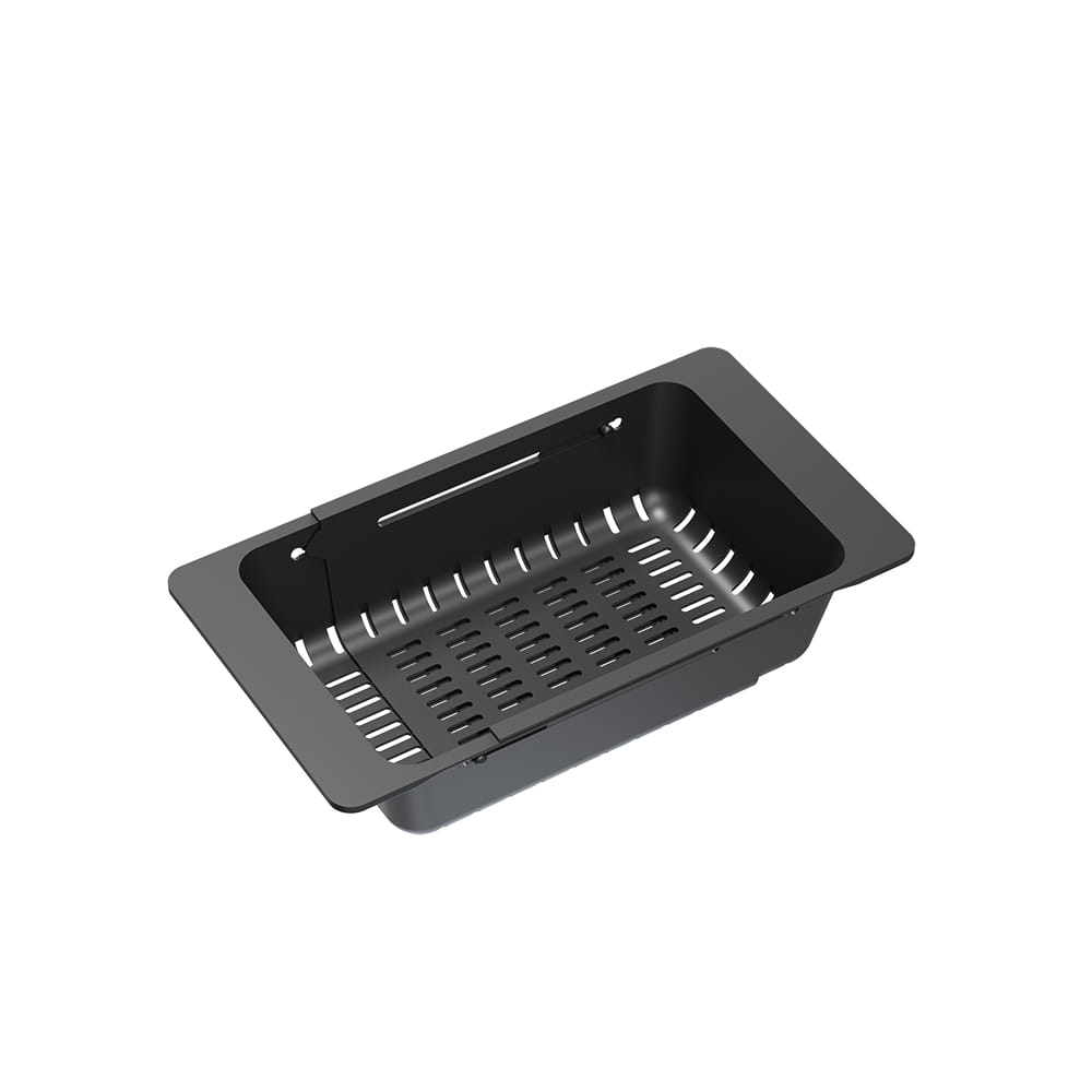 ● Kolejny, to teleskopowa wkładka ociekowa z tworzywa sztucznego. Niezwykle praktyczne rozwiązanie, które pozwala na odłożenie opłukanych produktów spożywczych, aby swobodnie wyschły, odprowadzając wilgoć do komory zlewu.
