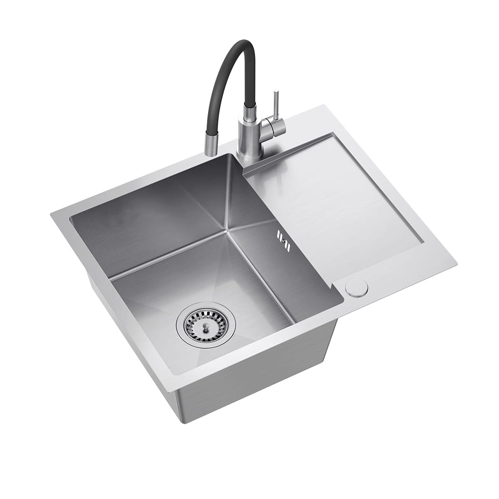Quadron Luke 116 zlewozmywak stalowy z syfonem 1-komorowy z/o + bateria z elastyczną wylewką stalowa