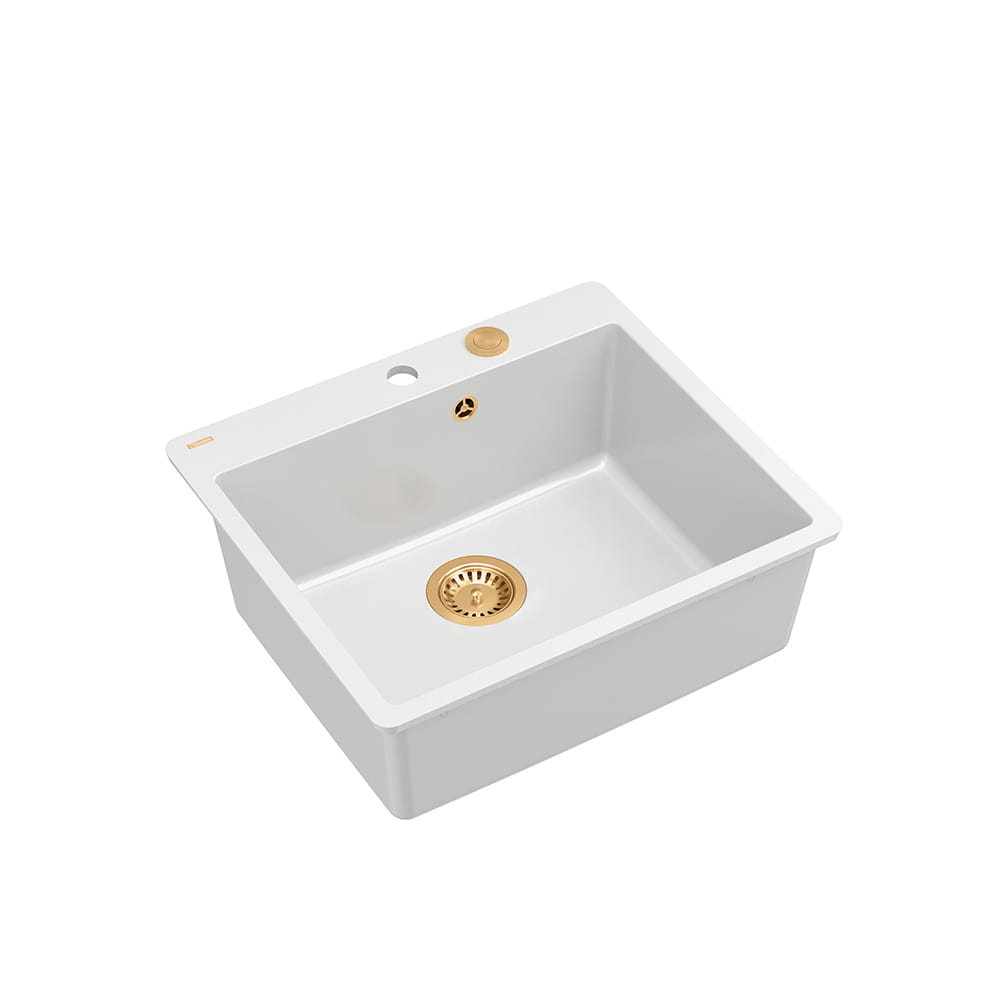 Quadron Morgan 110 FM PRODUKT NA ZAMÓWIENIE | granitowy zlewozmywak kuchenny BIAŁY + MIEDŹ PVD | 1-komorowy na równi w blatem