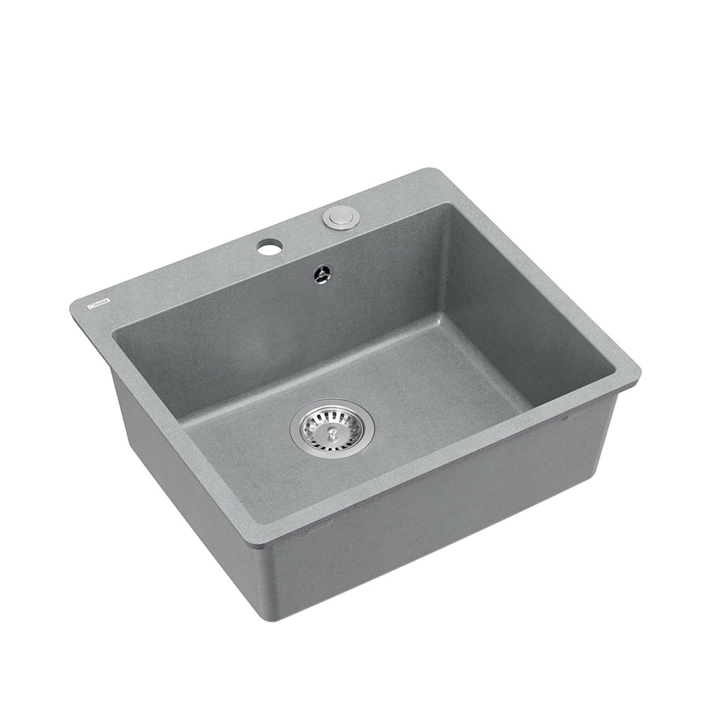 Quadron Morgan 110 FM PRODUKT NA ZAMÓWIENIE | granitowy zlewozmywak kuchenny SZARY + STAL | 1-komorowy na równi w blatem