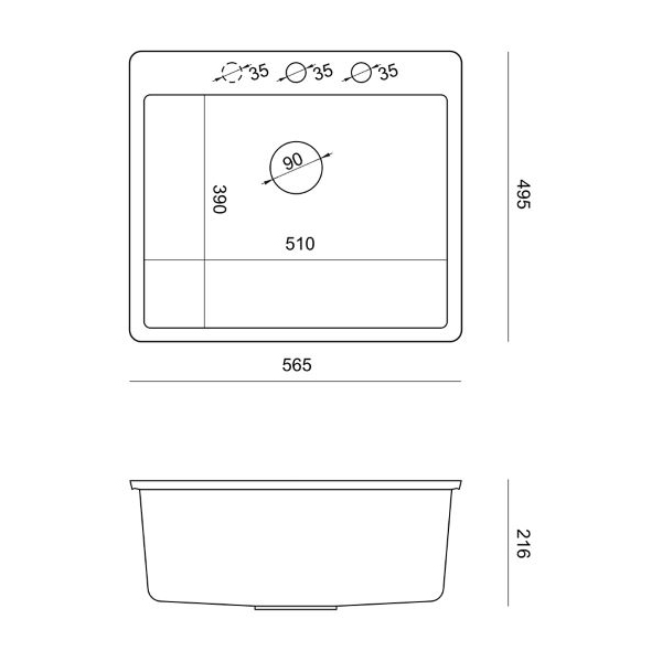 | Długość x szerokość zlewozmywaka | 565 mm x 495 mm |