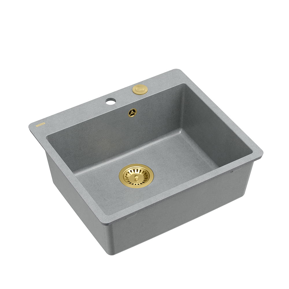 Quadron Morgan 110 FM PRODUKT NA ZAMÓWIENIE | granitowy zlewozmywak kuchenny SZARY + ZŁOTO PVD | 1-komorowy na równi w blatem