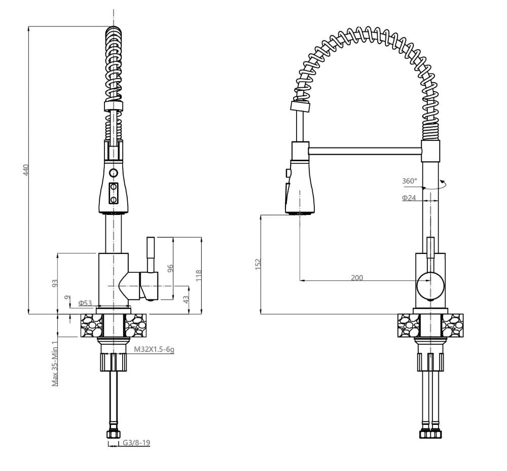 T1000 SLIM granit bateria kuchenna z wyciąganą wylewką