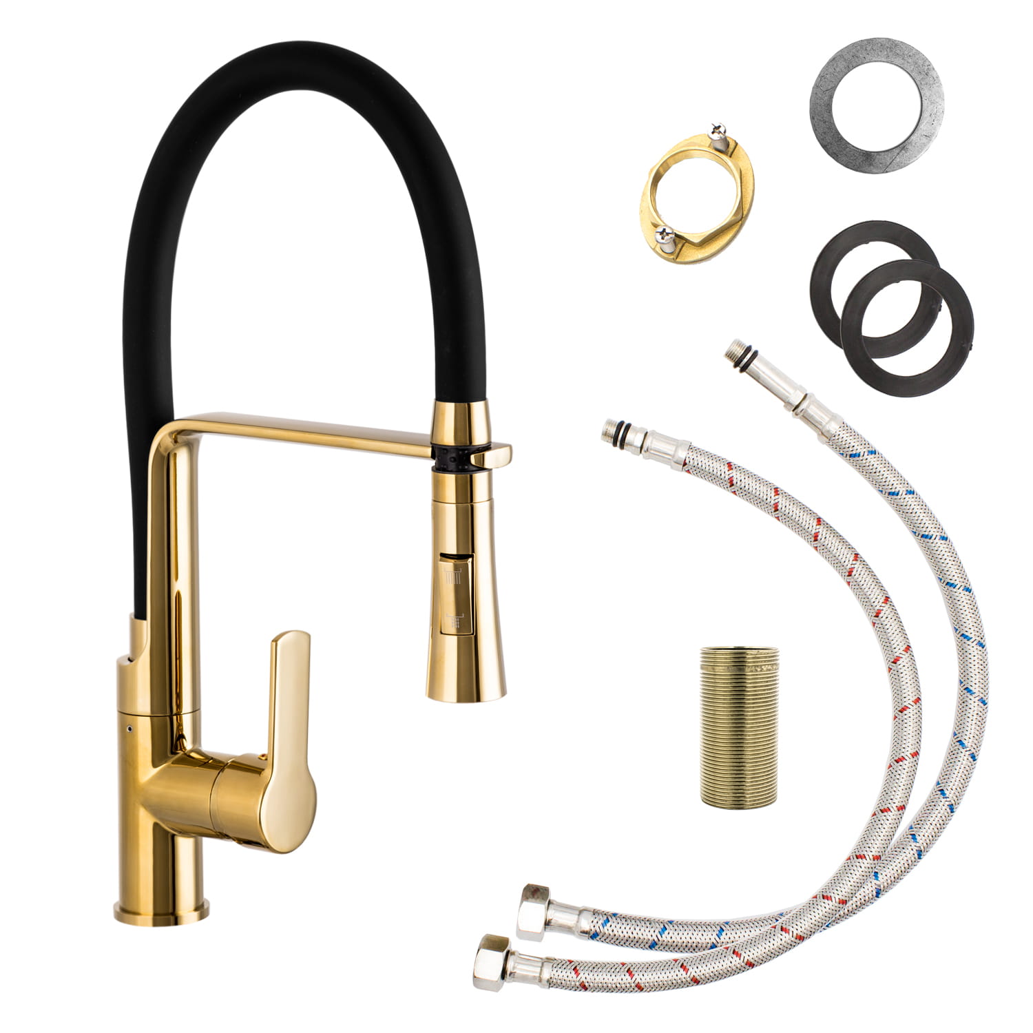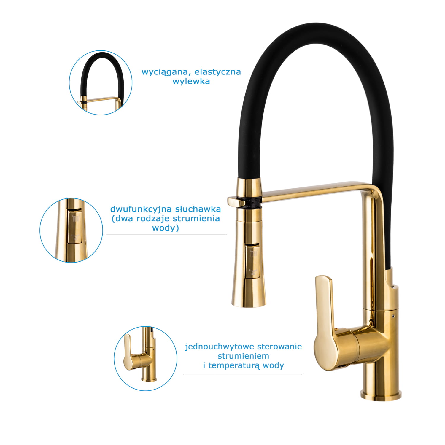 Spiral złota bateria kuchenna z wyciąganą wylewką