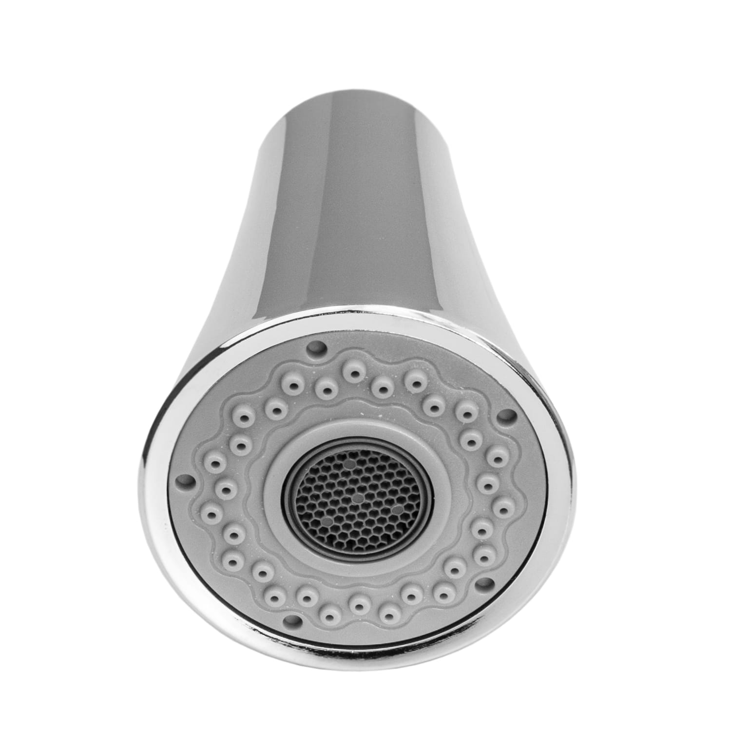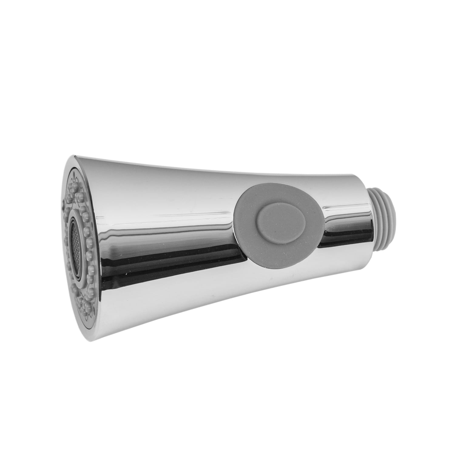Słuchawka kuchenna do baterii z wyciąganą wylewką, wykonana z tworzywa PCV, w kolorze chrom. Dwie funkcje strumienia wody (prysznic i ciągły). Gwint standardowy 1/2''. Powierzchnia słuchawki pokryta wysokiej jakości chromem, odporna na przebarwienia i wysoką temperaturę. Gumki przeciw osadzaniu się kamienia. Pasuje do każdego węża kuchennego z przyłączem 1/2''.
