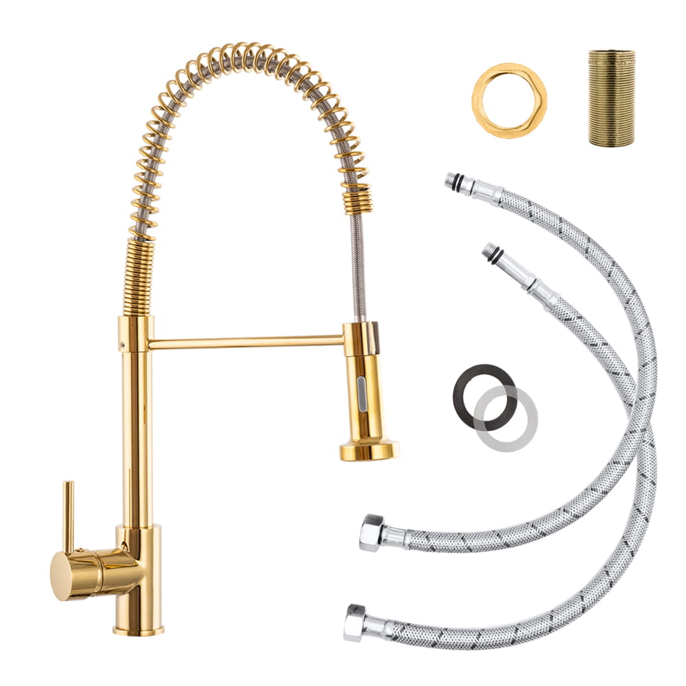 Spiral złota bateria kuchenna z wyciąganą wylewką