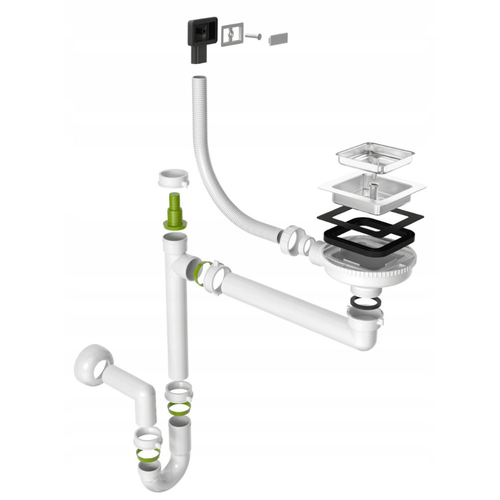 Konstrukcja syfonu pozwala na zachowanie większej ilości miejsca pod blatem roboczym. Zyskaj dodatkową przestrzeń dla pojemnika na odpady lub akcesoria kuchenne. Syfon jest odpowiedni dla wszystkich naszych zlewozmywaków granitowych z jedną komorą. Wykonany z tworzywa PCV. Wysoka jakość. Wymiary standardowe. Odpływ 90 mm. Możliwość podłączenia zmywarki lub pralki. SYSTEM ANTYPRZELEWOWY.