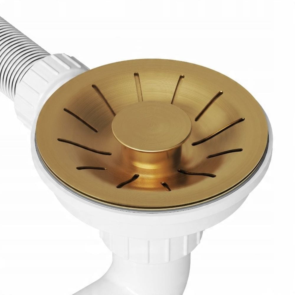 Syfon do zlewu stalowego Lux jednokomorowy z prostokątnym przelewem złoty