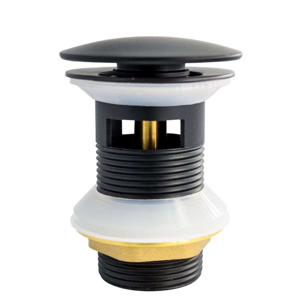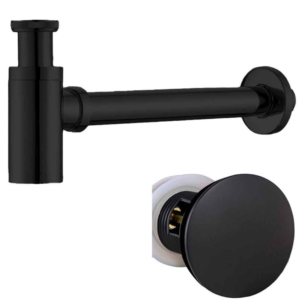 Syfon umywalkowy metalowy MIKE-BL + korek klik-klak z przelewem czarny mat