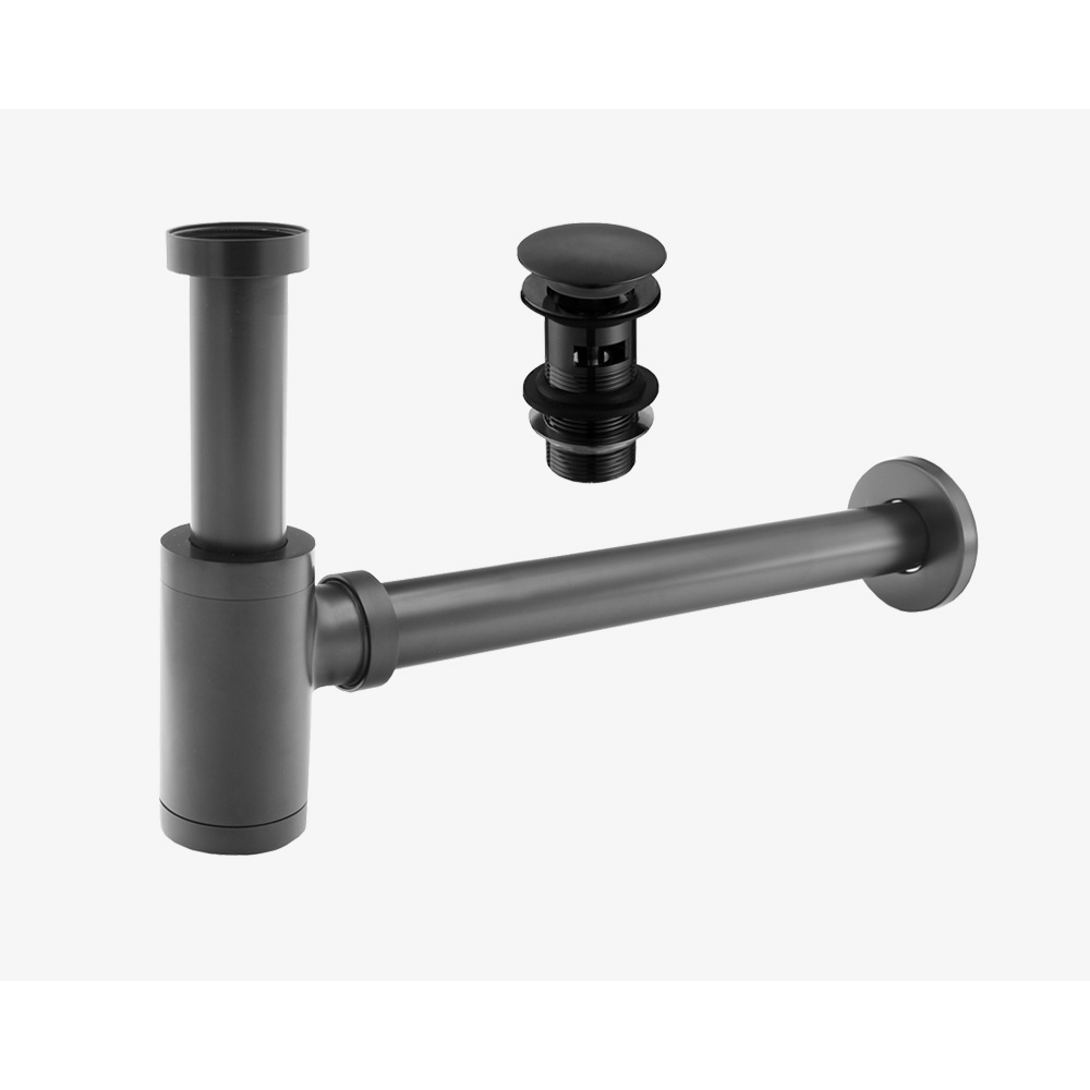 Syfon umywalkowy mosiężny + korek klik klak – Czarny