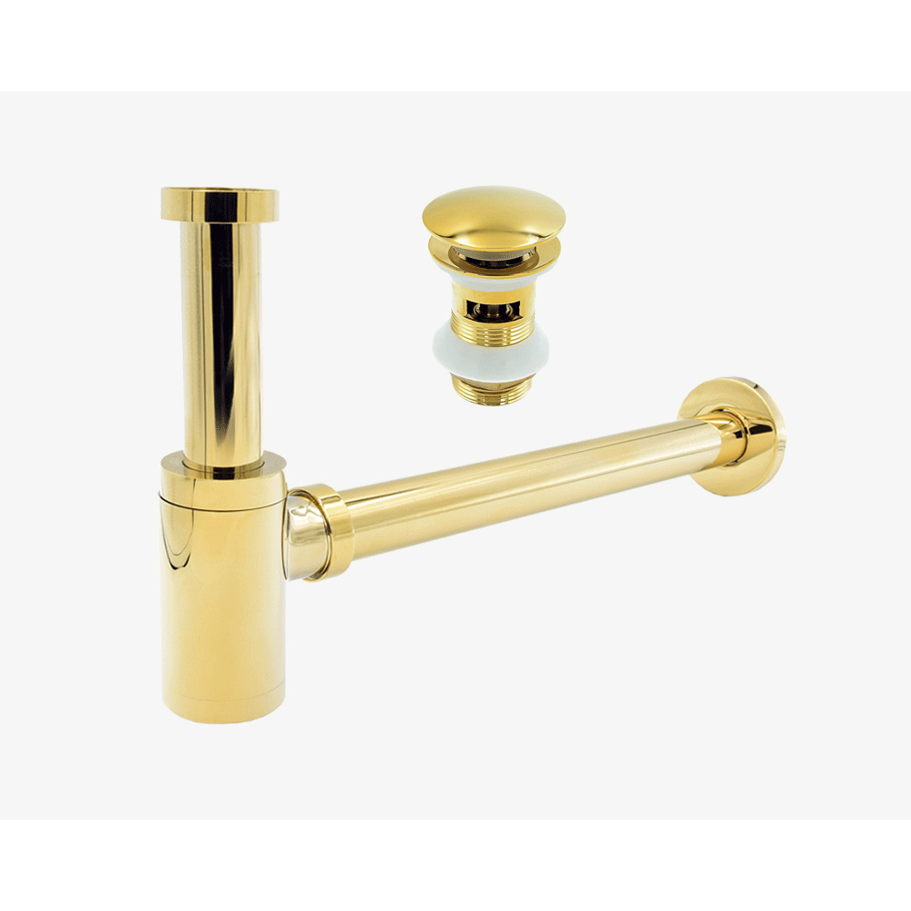 Syfon umywalkowy mosiężny + korek klik klak – Złoty