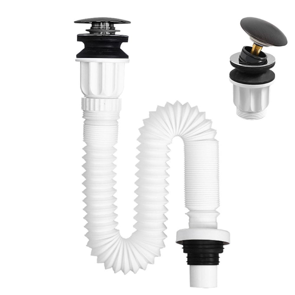 Syfon umywalkowy OLEK marki Hydrosan to funkcjonalne i elastyczne rozwiązanie, idealne do różnych umywalek. Dzięki harmonijkowej konstrukcji, syfon jest regulowany, co umożliwia łatwe dopasowanie go do różnych wysokości oraz szerokości instalacji, jego elastyczność sprawia, że jest to produkt pasujący do większości standardowych umywalek. Wykonany z wysokiej jakości plastiku, syfon jest odporny na wilgoć, korozję oraz uszkodzenia mechaniczne. Jest lekki, łatwy w montażu i konserwacji, co zapewnia wygodę użytkowania. Syfon wyposażony jest w korek typu klik-klak w eleganckim szczotkowanym złotym wykończeniu, który doskonale uzupełnia design łazienki.