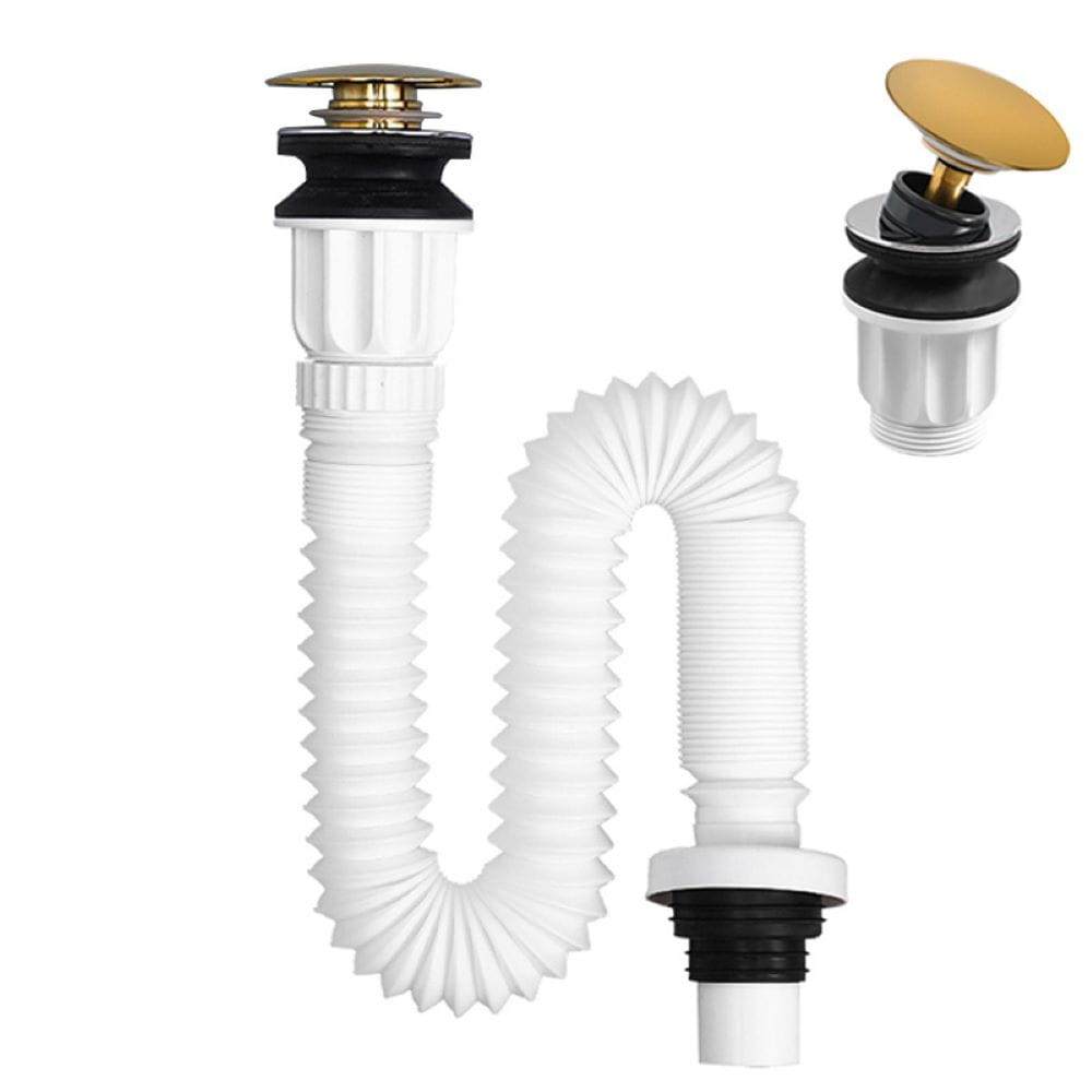 Syfon umywalkowy OLEK marki Hydrosan to funkcjonalne i elastyczne rozwiązanie, idealne do różnych umywalek. Dzięki harmonijkowej konstrukcji, syfon jest regulowany, co umożliwia łatwe dopasowanie go do różnych wysokości oraz szerokości instalacji, jego elastyczność sprawia, że jest to produkt pasujący do większości standardowych umywalek. Wykonany z wysokiej jakości plastiku, syfon jest odporny na wilgoć, korozję oraz uszkodzenia mechaniczne. Jest lekki, łatwy w montażu i konserwacji, co zapewnia wygodę użytkowania. Syfon wyposażony jest w korek typu klik-klak w eleganckim szczotkowanym złotym wykończeniu, który doskonale uzupełnia design łazienki.