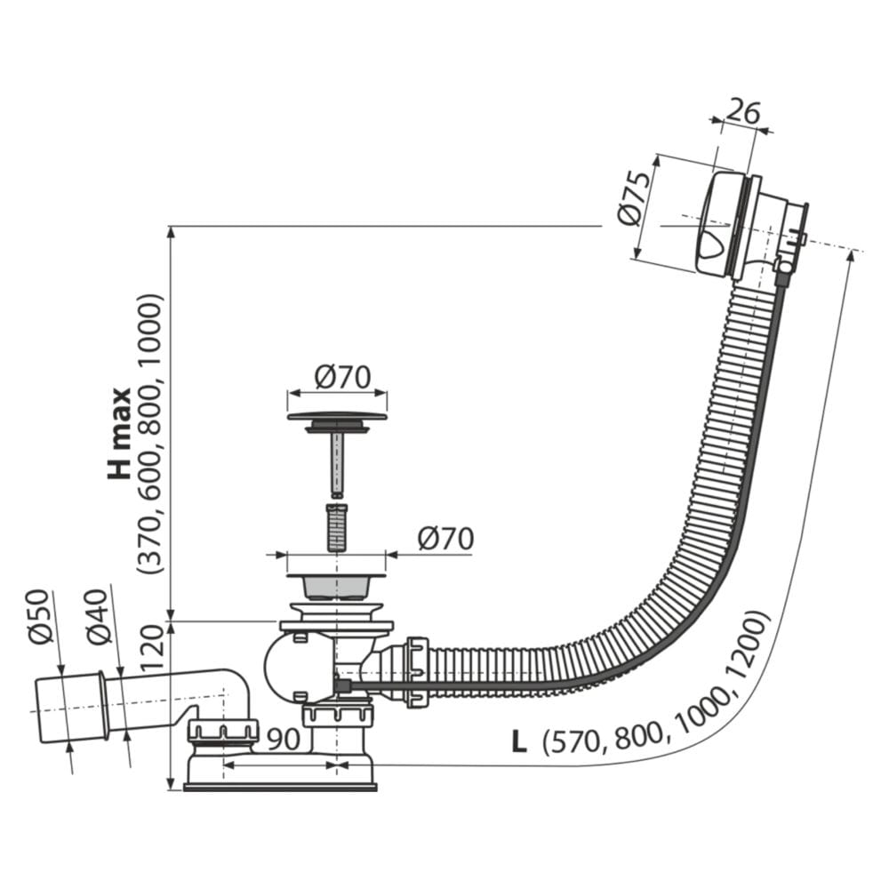 Długość syfonu wannowego 80 cm