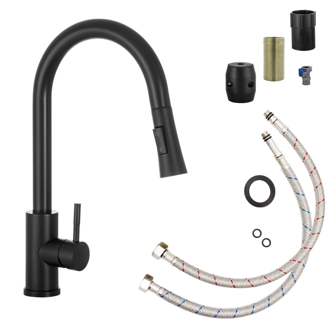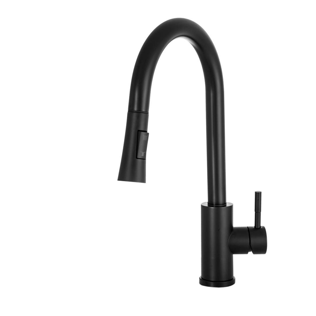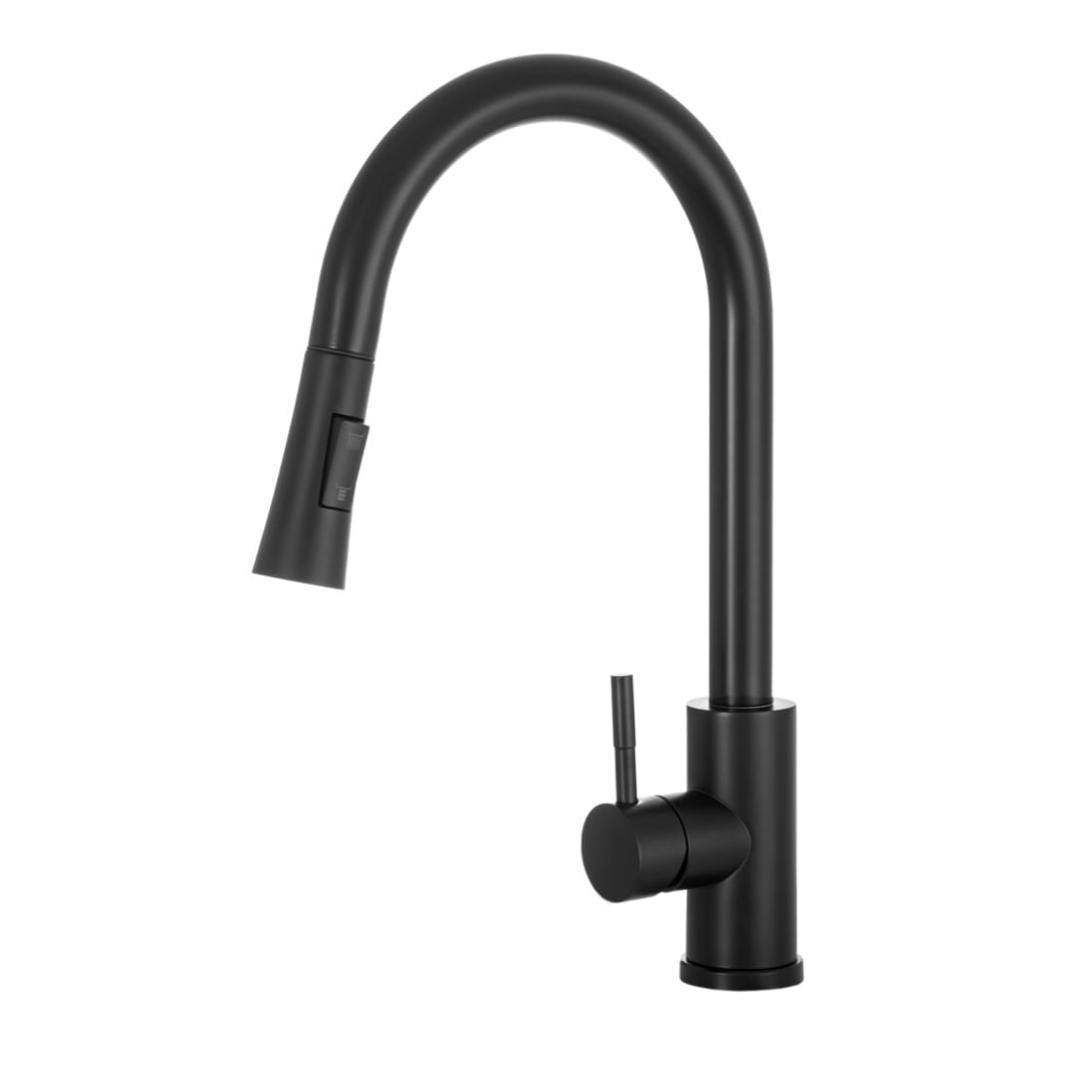 TARU SLIM bateria kuchenna z wyciąganą wylewką o wysokiej jakości w kolorze czarnym. Powłoka baterii odporna na przebarwienia i wysoką temperaturę. Ceramiczna głowica 40 mm. Obrotowa 360', wyciągana wylewka. Dwufunkcyjna słuchawka (dwa rodzaje strumienia wody). Standardowy otwór montażowy 35 mm.
