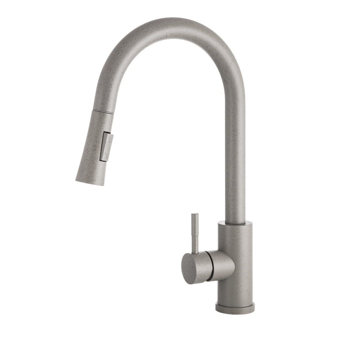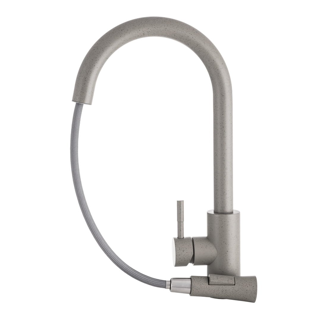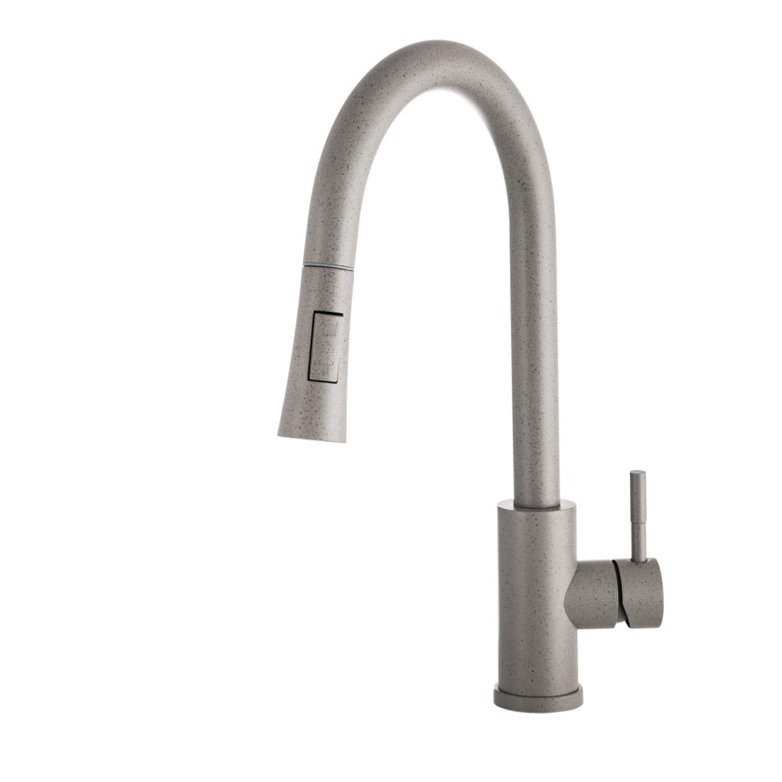 TARU SLIM bateria kuchenna z wyciąganą wylewką o wysokiej jakości, wykonana z mosiądzu, w kolorze szarym nakrapianym. Powłoka baterii odporna na przebarwienia i wysoką temperaturę. Ceramiczna głowica 40 mm. Obrotowa 360', wyciągana wylewka. Dwufunkcyjna słuchawka (dwa rodzaje strumienia wody). Standardowy otwór montażowy 35 mm.